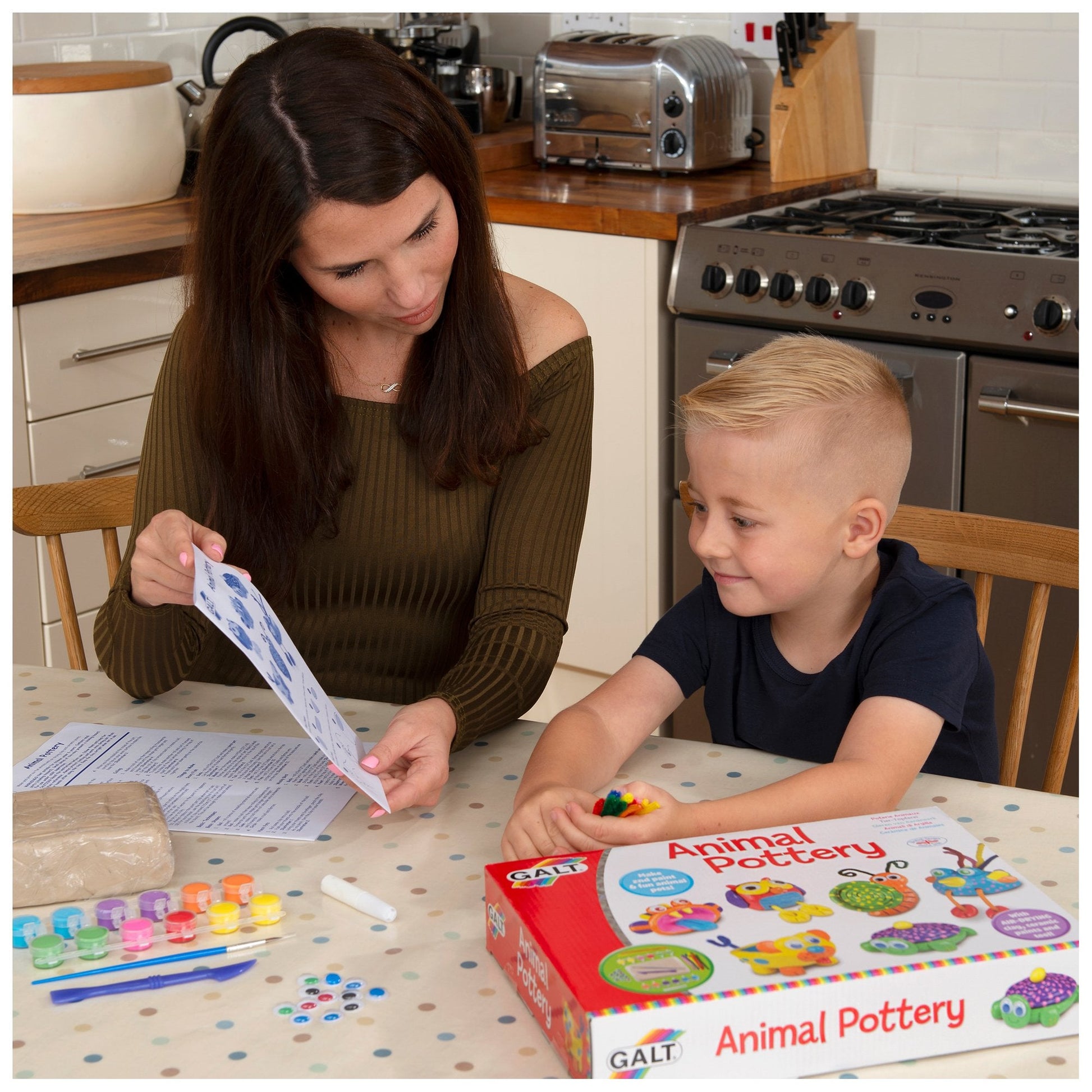 Make and paint six fun clay animals including a puppy pot, snail coil dish and wacky bird. Learn basic pottery techniques to create pinch pots and coils with air-drying clay. Decorate with colourful ceramic paints and finish with cord legs, pipe cleaner tails and wiggly eyes.