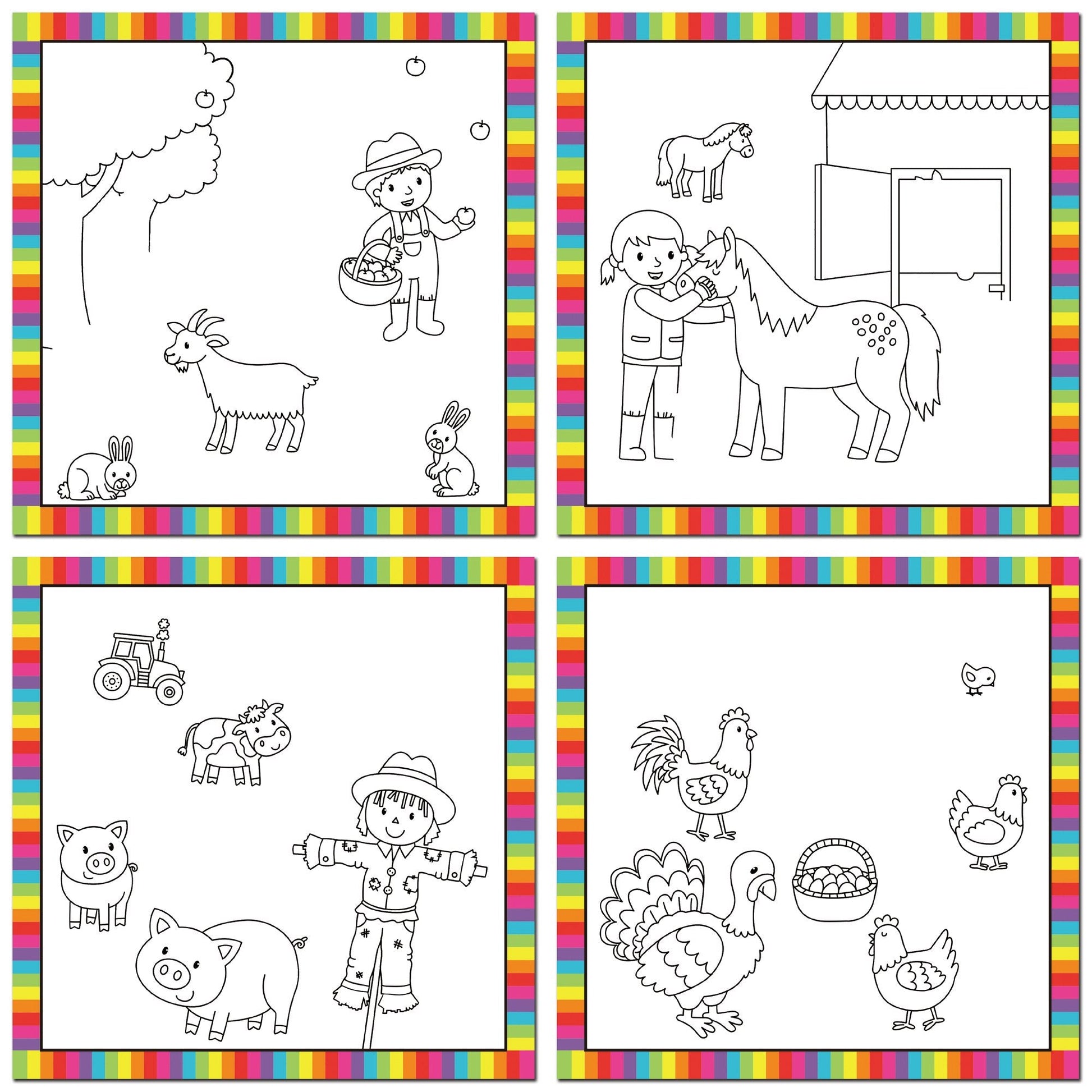 6 reusable picture boards on a sturdy loop with chunky water pen. These fun books feature 6 reusable pictures to colour with the water pen. Fill the pen and use to reveal the hidden pictures of Baby Farm Animals. The coloured pictures magically appear and then disappear so children can enjoy colouring in, over and over again. Ideal for travel. Store water pen in holder on front page.